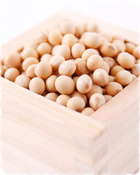 醤油造りの主役となるものです。大豆の主成分であるたんぱく質が、麹菌の酵素(プロテアーゼ)により分解され、醤油の旨味成分であるアミノ酸を生み出します。 醤油造りに使われる大豆には、一般的な「丸大豆」と、脂肪分をあらかじめ取り除いた「脱脂加工大豆」があります。丸大豆は水溶性油脂を含んでおり、味がまろやかになります。脱脂加工大豆は、たんぱく質のリッチな旨味が特徴です。 ニシキ醤油では、丸大豆は国産のものを、脱脂加工大豆はインド産のものを使用しています。また、弊社のすべての製品はnon-GMO(遺伝子組み換え体ではない)原料を使用しています。 |